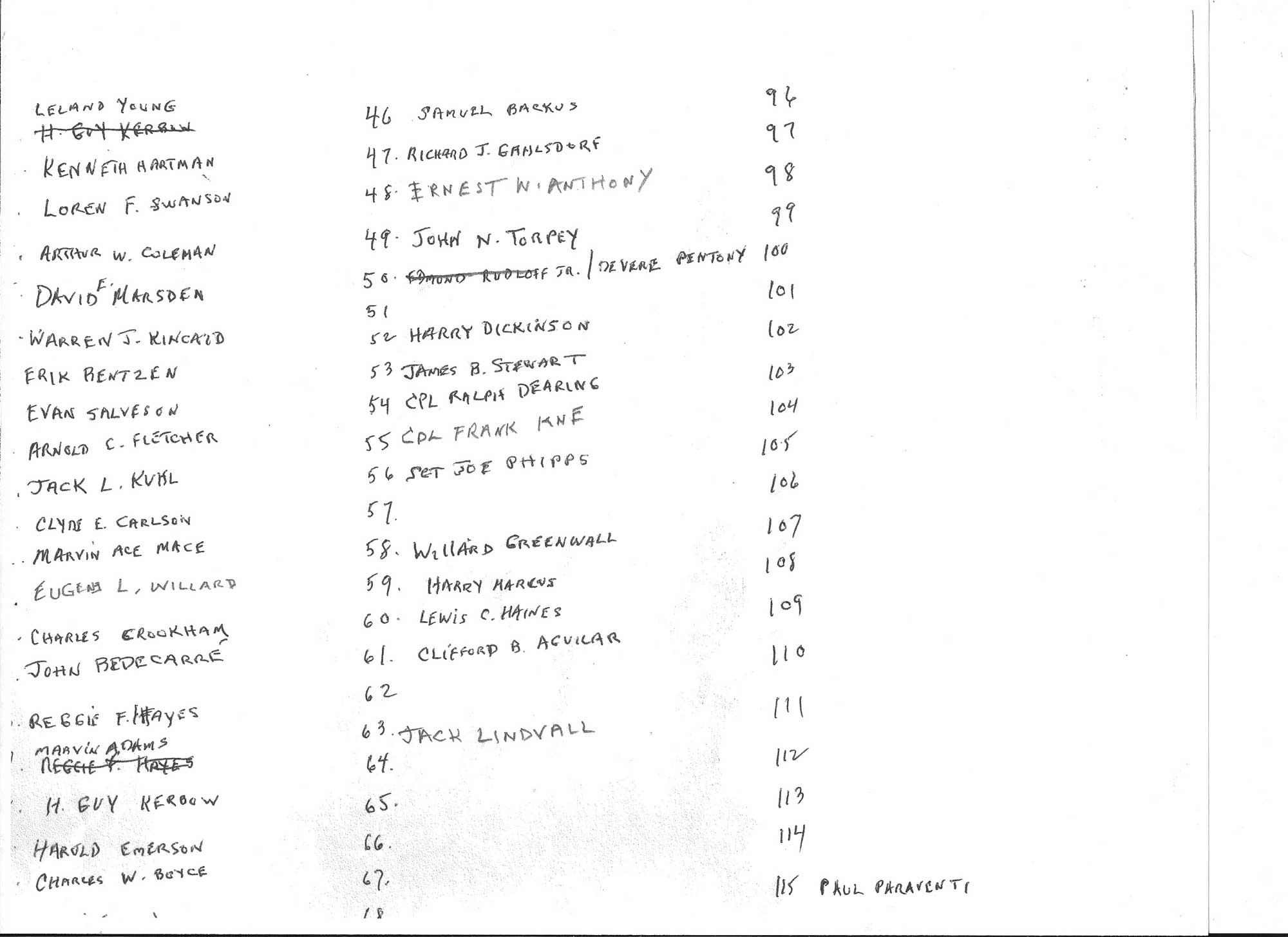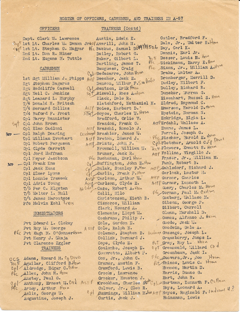 General Miller, Eurdol, Kerbow, More, German, Welch, Marcus, Gossage and Bentzen